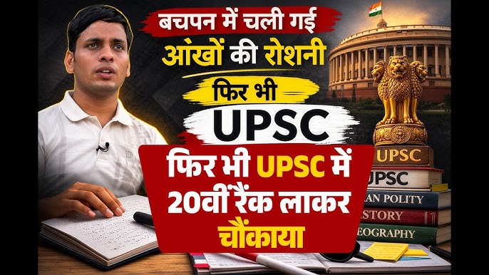 এক দৃষ্টিশক্তিহীন প্রার্থী ইউপিএসসি পরীক্ষায় ২০তম স্থান অর্জন করেছেন। এটি ভারতের প্রশাসনিক পরীক্ষার ইতিহাসে এক অনন্য সাফল্য।